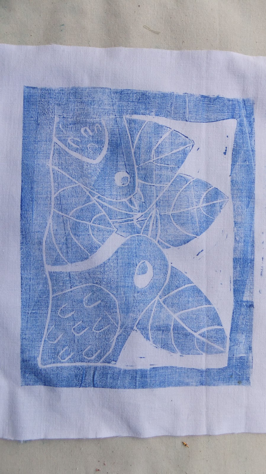 So I tried to create a positive lino block by stamping the negative block onto another piece of lino and removed all the blue ink. It took me much longer than I anticipated but I like the effect. Some of the plant details got lost in the cutting as I found it too difficult to leave tiny spikey bits without cutting off the tips.